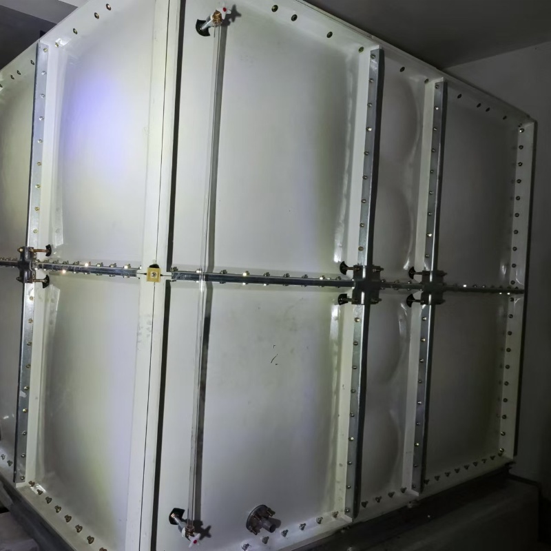 SMC水箱組裝就是用模壓的小塊,到施工現(xiàn)場組裝成大的水箱。外面要用角鋼進(jìn)行固定的,角鋼搭出個水箱模型,在上面鋪玻璃鋼平板,拼縫處再現(xiàn)場多糊幾層方格布...